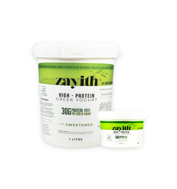Zayith High-Protein Sweetened Greek Yogurt is a luxuriously thick, velvety-smooth dairy product crafted from premium quality milk and live cultures. Lightly sweetened to enhance natural flavor, it delivers a satisfying taste experience without compromising on nutrition.